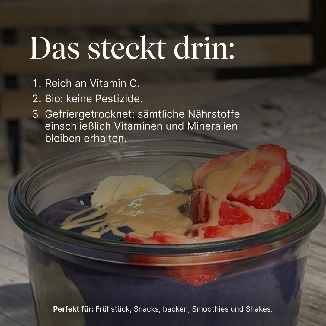 Unsere Bio Erdbeerscheiben sind schonend gefriergetrocknet und behalten so ihr natürliches Aroma sowie die attraktive Optik. Die 200g Packung bietet dir eine vielseitige, pflanzliche Zutat für Müsli, Backwaren oder Snacks. Durch die Gefriertrocknung bleiben Farbe und Geschmack erhalten, ohne Zusatzstoffe. Ideal für alle, die Wert auf hochwertige, natürliche Produkte legen.