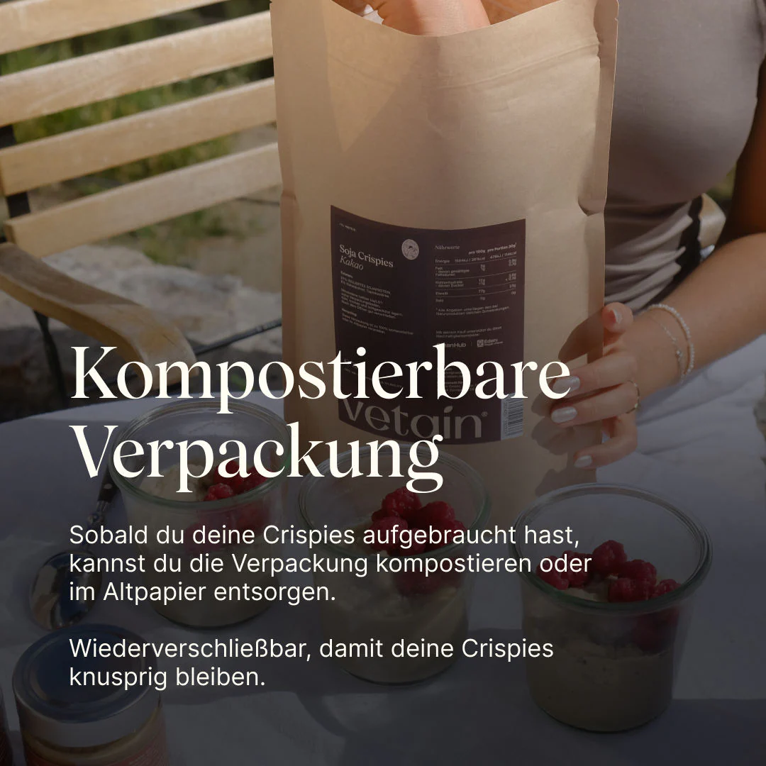 Die Soja Protein Crispies (77%) von Vetain mit Kakao – 750g sind ideal für deine proteinreiche Ernährung. Die knusprigen Crispies aus hochwertigem Sojaprotein bieten eine feine Kakaonote und eignen sich perfekt zum Verfeinern von Müsli, Backwaren oder als Snack. Entdecke vielseitige Einsatzmöglichkeiten für mehr Geschmack und Textur in deinen Mahlzeiten.