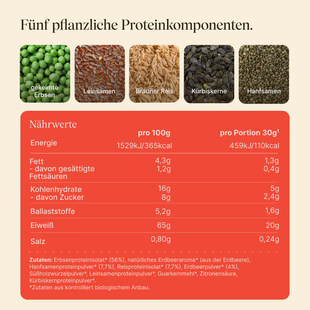 Vegan Protein Erdbeere (600g/BIO) von Vetain bietet eine hochwertige, biologische Proteinquelle für eine vegane Ernährung. Mit seinem natürlichen Erdbeergeschmack unterstützt es Muskelaufbau und Regeneration, ideal für aktive Menschen. Frei von tierischen Inhaltsstoffen und künstlichen Zusätzen, überzeugt dieses Proteinpulver durch seine Reinheit und Nachhaltigkeit. Es lässt sich einfach in Shakes oder Smoothies integrieren und fördert eine ausgewogene, pflanzliche Ernährung.